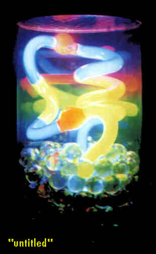 Yes, those are the great machines known as i mac's and whose innovative approach to colors are changing the way we live. Have you noticed how the other PC's are now trying to steal yet another orginal Apple idea?  How about appliances now available in these "fruit" colors, if you look around it's coming from all directions. Great job Mr. Jobs!!! Strawberry, Lime, Tangerine, Grape and Bluebery...cool names for cool machines. They have an iridescent glow about them, kind of like, well, NEON. I like to call them Neon Red, Neon Green, Neon Orange, Neon Purple and Neon Blue. Today, we are bringing into our homes Neon Art, it's been around a long time and never seems to date itself. So there's no better time for artist Eve Hoyt to introduce us to the world of Neon.